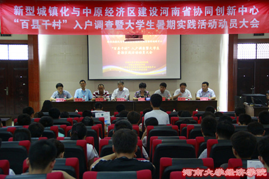 7月11日上午,由经济学院、中原发展研究院、黄河文明与可持续发展研究中心、校团委联合举办的“百县千村”入户调查暨大学生暑期实践活动动员大会在经济学院二楼报告厅召开。校党委副书记王凌出席会议并讲话,相关单位负责人和经济学院调研师生参与会议。会议由中原发展研究院副院长郑祖玄主持。