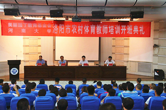 7月1日上午,“美丽园丁教育基金洛阳市农村体育教师培训项目”开班典礼在我校明伦校区科技馆二楼报告厅举行。洛阳市教育局以及我校远程与继续教育学院、体育学院相关领导和教师代表出席典礼。典礼由体育学院副院长牛云杰主持。
