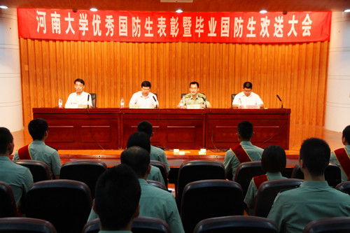 6月29日下午,河南大学优秀国防生表彰暨2015届毕业国防生欢送大会在金明校区办公楼学术报告厅举行。副校长刘志军,教务处、学生处、选培办干部及全体国防生与会,会议由选培办主任朱忠锋主持。