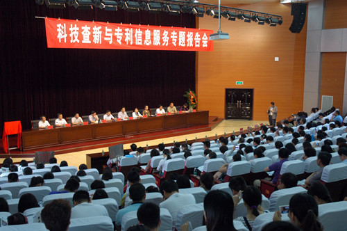 在热烈的掌声中,娄源功等领导为河南大学科技查新工作站揭牌。
