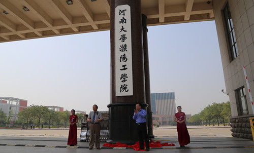 在热烈的掌声和师生共同期待中,赵瑞东、赵国祥为河南大学濮阳工学院揭牌,共同祝愿河南大学濮阳工学院的明天更加美好!