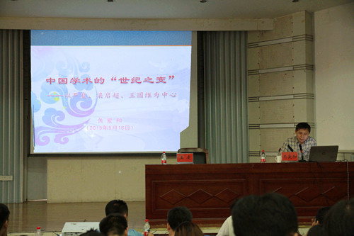 在以《中国学术的“世纪之变”——以严复、梁启超、王国维为中心》为题的报告中,关爱和从“中日甲午战争”开始谈起。他指出,中日甲午战争的失败导致了中国近代思想、政治、文化的重大转折,促使了中国的先进知识分子更为急迫地寻求救亡图存的路径、方法,从而形成了19、20世纪之交中国学术与文学的“世纪之变”。而在这其中,最具开拓之功者当数严复、梁启超、王国维。关爱和分别以三位学术大家的相关著作和理论探讨了他们对中国近代学术道路的转变所造成的深刻影响。在近两个小时的报告过程中,关爱和引经据典,全方位、多角度,深入浅出地阐述了中国近代学术道路的不断变化和发展过程。作为“至善大讲堂”的首讲,这场报告既具有理论高度,又具有学术研究的针对性和指导性,为研究生提供了开启学术之门的钥匙。