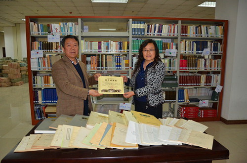 3月31日下午,我校校友石璋如先生家属石磊向我校图书馆捐赠图书83种,87册。我校校友工作办公室主任尚慧敏受石磊委托参加了捐赠仪式,李景文馆长代表图书馆接受了捐赠。