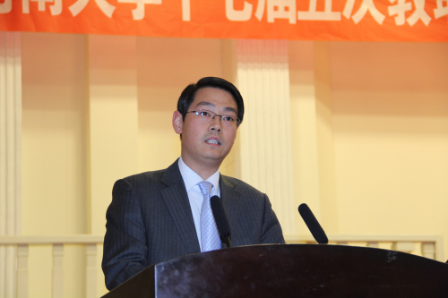 为广泛听取意见建议,推动学校高水平大学建设进程,本次大会还新增设了主题发言环节。文学院院长李伟昉、棉花生物学国家重点实验室常务副主任苗雨晨、经济学院院长宋丙涛、发展规划处处长宋伟分别就教学、科研、国际化和深化综合改革等进行主题发言。