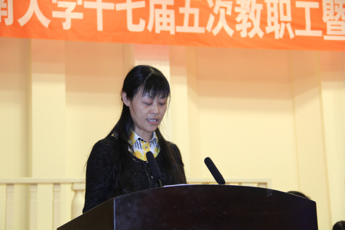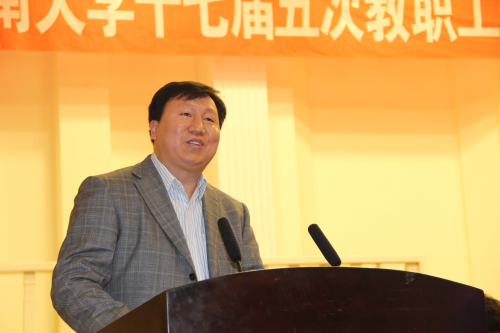 娄源功强调了校十次党代会提出的“国家一流、区域引领、中原风格”的发展道路,并从生源、师资、学科、条件、管理等方面分析了“一流”的本质。他指出,全校每个群体、每个单位、每个人员、每个层面,都要有创建一流大学的意识。目前学校各项工作都处在爬坡过坎的关键时期,全校教职工生要在校党委的正确领导下,以本次大会的召开为契机,按照学校的统一部署,深化综合改革,凝心聚力发展,努力实现高水平大学建设新的突破。