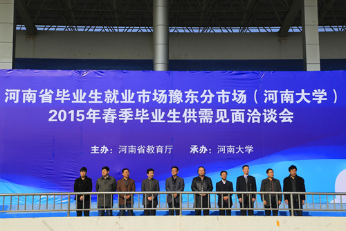 3月27日上午,由河南省教育厅主办、河南大学承办的河南省毕业生就业市场豫东分市场揭牌仪式暨河南大学2015年春季毕业生见面洽谈会开幕式在金明校区志义体育场隆重举行。