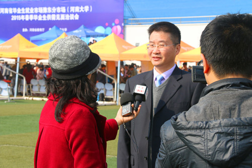 刘先省在见面会现场接受了媒体记者的采访,介绍了2015届毕业生的就业形势和我校为提高就业质量采取的积极举措。