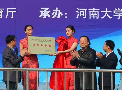 会上,赵国河、赵国祥为河南省毕业生就业市场豫东分市场举行揭牌仪式。