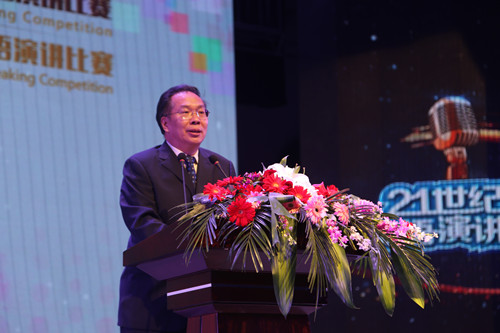 王国庆致辞,他用流利的英语盛赞参赛选手的精彩表现,肯定了“21世纪杯”英语演讲比赛对我国英语教育事业做出的重要贡献,并表示随着比赛的深入,此项赛事已经成为全国青少年学生的英语盛会。他希望所有选手都能借助这个舞台放飞梦想,并鼓励广大青年用英语了解世界、自由表达,为国际交流做出自己的贡献,为实现中华民族伟大复兴的中国梦而努力奋斗。