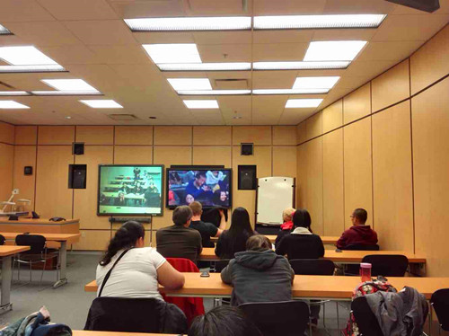 双方大学生就中美医疗保险、假期生活等话题展开讨论。会场气氛热烈、轻松活跃。我校一名参加论坛的同学表示,这种形式的对话很有现场感,增加了自己对美国和美国大学生的直接了解,非常有意义。