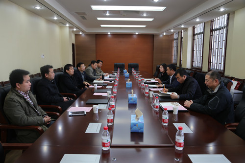 2014年12月16日,邯郸学院党委书记杨金廷带领该校党政办、科研处、太极文化学院等单位负责人来校,就科研管理和协同创新中心运行等工作进行考察交流。校党委书记关爱和、副校长张宝明及党政办、科研处、公共体育教研部相关负责人热情接待了杨金廷一行。双方在金明校区行政楼二楼会议室进行了座谈。