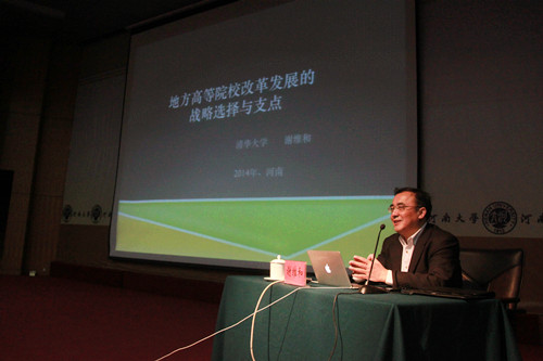 刘志军在总结讲话中表示,谢维和教授的报告立意深远,论证严谨,他凭借对国内外高等院校全方位的了解,对中国高等教育发展规律的准确把握和对十八届三中全会精神的深刻理解详细分析了地方高等院校面临的困境,重点探讨了地方高等院校发展的战略支点,对我们下一步更好的解放思想,深化教育改革,加快教育发展提供了十分有益的启示,希望各单位联系实际工作,认真学习领会报告精神,破除思想观念障碍,共同谋划学校发展改革,为河南大学建设成为国内一流高水平大学积极建言献策。