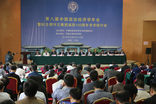 10月25日至26日,由中国政治经济学年会各理事单位共同主办、我校经济学院承办的第八届中国政治经济学年会暨纪念周守正教授诞辰100周年学术研讨会在我校举行。来自清华大学、中国人民大学、复旦大学、中共中央党校、中科院、社科院、伦敦大学、早稻田大学等国内外高校和研究机构的230余名专家、学者汇聚一堂,对当前政治经济学界的前沿、热点问题进行深入研讨。