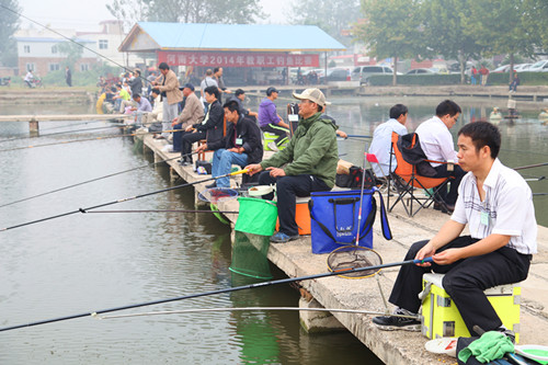 为了丰富教职工业余文化生活,满足我校广大钓鱼爱好者的垂钓愿望,9月27日上午,“河南大学2014年教职工钓鱼比赛”在风景秀丽的香山庄园养鱼池举行。本次钓鱼比赛由校工会主办,河南大学教职工钓鱼协会承办,来自全校39个基层工会的100多名选手参加了本次比赛。校工会主席朱恒宽出席此次活动。