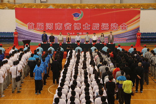 9月26日上午,首届河南省博士后运动会在我校明伦校区体育馆隆重开幕。国家人力资源和社会保障部专技司博士后处副处长薛万里,中国博士后科学基金会博士后基金管理处副处长王芳,省人民政府办公厅副主任王梦飞,省人力资源和社会保障厅党组成员、省外国专家局局长郭成全,省人力资源和社会保障厅博士后与留学人员工作处处长、省博士后管委会办公室主任张彩,省人力资源和社会保障厅博士后与留学人员工作处副处长、省博士后管委会办公室副主任余滨,省人力资源和社会保障厅博士后与留学人员工作处副处长王光晓,我校常务副校长赵国祥等出席开幕式。开幕式由我校副校长刘先省主持。