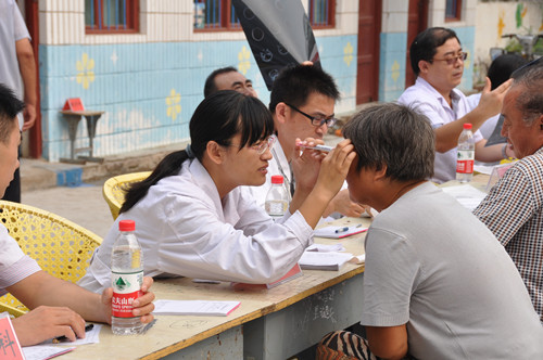 来自我校的普内科、心内科、消化内科、中医科、儿科、普外科、骨科、眼科等学科的专家教授为四百多位村民进行了疾病诊断、健康咨询、心电及超声检查、测试血压、身高体重等项义诊服务,并为禹洲希望小学的孩子们进行了视力普查及眼卫生知识传递。