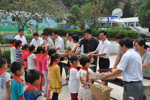 在禹洲希望小学的操场上举行了捐赠仪式。焦峰向教师们致以节日的问候,向孩子们提出了殷切希望。谈到捐赠活动旨在促使学校更好地发展,学生更好学习。阳堌镇党委副书记、校长分别致谢,表示要更加重视教育事业的发展,以教师积极工作,学生勤奋学习来回报河南大学。师生代表接受了学习用具及体育器材的捐赠。