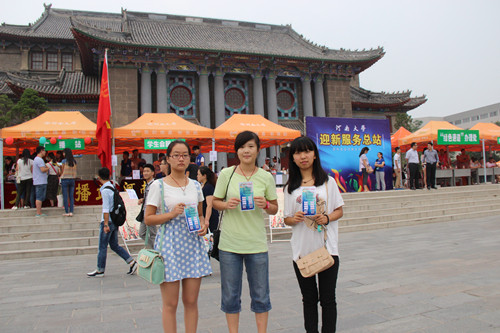 在学长们的引导下,新生们积极参加活动,14级新生谭覃拿着盖好章的“鉴宝图”欣喜地说:“游玩参观了一圈儿,真的长见识啦!感觉自己报考河大真是报对了!今天的校园之旅让我对大学生活充满了期待!”