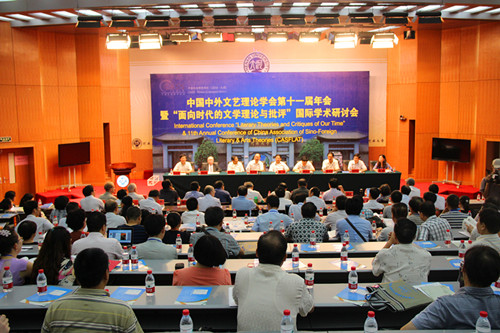 8月16日上午,由中国中外文艺理论学会、中国社会科学院文学研究所、国际美学协会、河南大学文学院联合举办的中国中外文艺理论学会第十一届年会暨“面向时代的文学理论与批评”学术研讨会在我校金明校区计算机大楼二楼报告厅开幕。中国社会科学院副院长张江,国际美学学会主席、中国中外文艺理论学会会长、中华全国美学学会副会长、中国社会科学院文学研究所副所长高建平,中国社会科学院文学研究所所长陆建德,河南省委宣传部副部长李宏伟,我校校长娄源功,前国际美学学会主席、美国教授卡特等领导及嘉宾出席开幕式。来自中国社会科学院、北京大学、清华大学等全国科研院所和高校的近500名专家、学者与会。开幕式由河南大学出版社社长张云鹏主持。