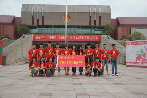 8月11日——8月19日,河南大学“井冈之星”实践团将与复旦大学、厦门大学、华侨大学等21所高校的实践团共同参加2014年“井冈情·中国梦”全国大学生暑期实践季第五期专项活动。期间,基地对各实践团采取半军事化管理模式,三天的集中教学将通过三湾改编情景教学、重走“朱毛挑粮小道”、体验“红军的一天”现场教学等系列特色课程,以及各类井冈山斗争及井冈山精神的讲座,使广大青年大学生重温井冈山革命斗争历史,深入领会井冈山斗争精神,接受革命传统教育。其余时间由各个实践团根据自己的课题调研行程进行调研,开展课题研讨和校际交流,按期提交调研成果。