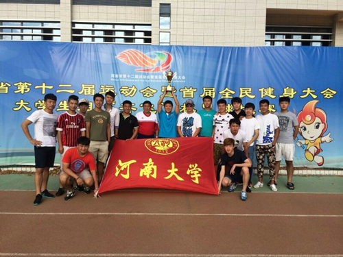 在刚刚结束的河南省第十二届运动会暨首届全民健身大会大学生组足球比赛中,代表河南大学出战的体育学院男子足球队,发扬不畏强手,奋勇拼搏的精神,冒着40多度的高温,经受了严重伤病的考验,经过四场浴血奋战,取得了场均进球4.25个,三胜一平的不败战绩,最终获得冠军。