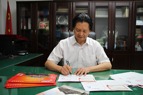 7月16日傍晚,刚刚开完校长办公会,娄源功校长又赶回自己的办公室,为我校2014年录取的新生亲笔签发录取通知书。