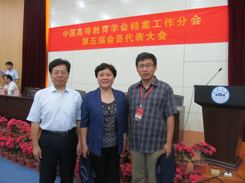 我校代表与副理事长兼秘书长、南京大学档案馆馆长吴玫(中)合影