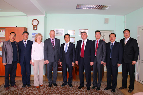 代表团在白俄罗斯国立大学受到了副校长丹尼利琴科的亲切会见。他对河南大学代表团的到来表示热烈欢迎。他说,白俄罗斯国立大学高度重视与河南大学的友好交流与合作,两校自2012年建立友好合作关系以来,实质性合作项目快速推进并已取得阶段性成果,特别是两校合作的新闻学与播音与主持专业合作办学项目已获得中国教育部批准并于今年实施招生,国立大学将尽一切努力,为河南大学学生提供优质师资与服务。梁晓夏表示,在中国与白俄罗斯两国政府与人民友谊日益增长的大环境下,河南大学与白俄罗斯国立大学之间的友好学术交流与合作顺利进行,两校的第一批交换生将于今年九月互派至对方进行学习交流,这无疑将会推动两校友谊的进一步加深,希望彼此牢牢把握合作的良好开端,在目前单学科合作的基础上,积极扩展两校各学科之间的学术交流与合作。梁晓夏同时也欢迎国立大学教育代表团在今年秋季访问我校。