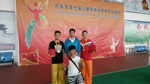 2014年5月27日上午,河南省第七届少数民族传统体育运动会于南阳市召开。我校武术队与石锁队健儿在代表团团长、副校长刘志军以及校体委的领导与支持下,经过三天激烈角逐,取得了优异的成绩。其中,武术队取得了两个一等奖、三个三等奖,石锁队在表演类项目中以第一名的优异成绩取得了一等奖。