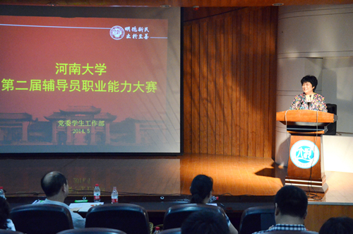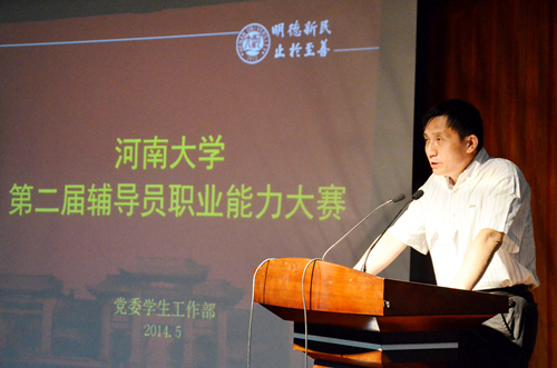 5月21日,为期三天的第二届河南大学辅导员职业能力大赛决赛成功落幕,距此,历时近1个月的第二届河南大学辅导员职业能力大赛圆满结束。校党委书记关爱和、党委副书记王凌分别观看本次活动特色工作展示环节和主题演讲环节的比赛并发表重要讲话。纪委、组织部、宣传部、人事处等职能部门领导和部分学院党委书记担任本次大赛评委。经过初赛选拨出的23个学院的30名辅导员参加决赛。全校近200名辅导员以及部分学生代表到场观摩比赛。本次活动由党委学生工作部主办。
