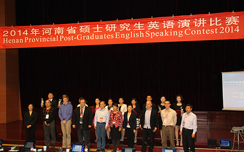 2014年5月10日下午,由河南省教育厅主办,河南大学承办的2014年河南省硕士研究生英语演讲比赛在我校金明校区图书馆一楼报告厅圆满落下帷幕。我校常务副校长赵国祥、河南省教育厅学位管理与研究生教育处处长贾正国等出席闭幕式。闭幕式由河南省教育厅学位办副调研员刘慧玲主持。