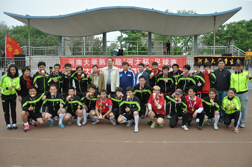 仪式先后为获得精神文明奖的球队、获得优秀个人奖的运动员以及获得优秀裁判的裁判员颁奖,最后为本届“河大杯”的冠军研究生院队、亚军国际教育学院队、季军计算机与信息工程学院队颁奖。值得一提的是,研究生院足球队无一败绩一路走来,成功卫冕,国际教育学院足球队也是连续三年获得亚军。