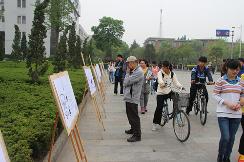2014年4月21日,由我校精神文明建设委员会办公室、河南省本源人文公益基金会共同举办的文明校园,和谐护生——丰子恺《护生画集》展在大礼堂广场举行。校文明办相关工作人员及部分师生代表参加了画展开幕式。