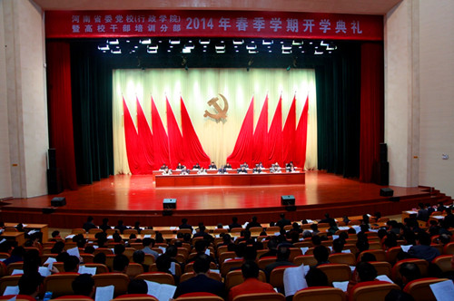 2014年2月27日上午,河南省委党校暨高校干部培训分部2014年春季开学典礼在省委党校举行。省委副书记邓凯出席开学典礼并作了题为“组织意识是党性修养的试金石”的报告。我校党委常务副书记梁晓夏、河南省干部教育培训中心河南大学分部第20期县处级干部培训班全体学员及干部培训中心有关负责同志参加了开学典礼。