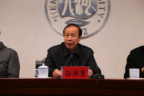 孙洪臣指出,开展党的群众路线教育实践活动,对于贯彻落实党的路线方针政策、办好人民满意的教育具有重大意义。河南大学各级党组织和广大党员领导干部,要把思想和行动统一到中央和省委部署要求上来,以良好的精神状态投入到教育实践活动,确保活动取得实实在在的成效。一是要认真学习领会中央精神和省委要求,特别是习近平总书记“四个直接关系”的重要论述以及郭庚茂书记“四个至关重要”的论述。二是要认真学习借鉴契合中央精神、富有河南特色的第一批教育实践活动先进经验。三是要采取务实管用的措施,将三个环节贯通起来、衔接起来,坚持高起点开局、高质量开展活动。四是要注重创新方式方法,在活动布局上要“四位一体”、同步推进;在活动组织上要坚持领导带头、点线面结合;在推进次序上要梯次展开、压茬推进;在活动指导上要坚持分类指导;在活动成效上要以群众满意为标准。五是要把教育实践活动与贯彻十八大、十八届三中全会精神以及习近平总书记讲话精神相结合,与建设“四个河南”相结合,与本单位本部门工作相结合,做到两手抓、两不误、两促进。