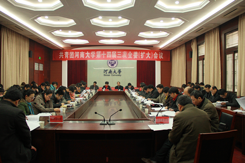1月16日,共青团河南大学十四届三次全委(扩大)会议在明伦校区小礼堂召开。校党委副书记王凌、组织部部长贾少鑫出席会议。校团委十四届委员会委员与会,全校各学院主管学生工作的党委领导、各单位团委负责同志及主要学生组织的负责人列席会议。会议由校团委副书记翟新礼主持。