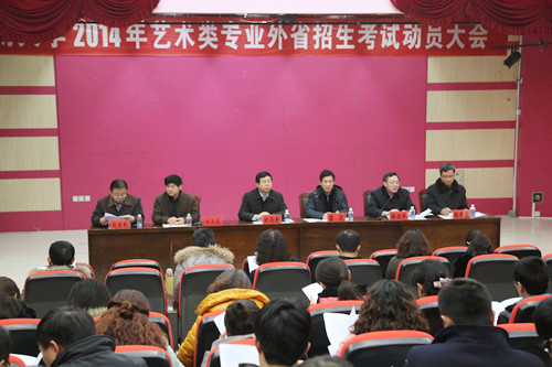 1月10日下午,我校2014年艺术类专业外省招生考试动员大会在科技馆一楼报告厅举行。副校长刘志军、纪委书记雷霆出席会议并讲话。纪委、教务处及各招生单位相关人员与会。会议由教务处处长刘济良主持。