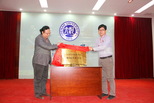 随后,赵国祥与王晓凡、丁炎、张棣先后为“河南大学软件学院冠群电脑学术创新合作中心”、“河南大学甲骨文工程实践教育中心”和“河南大学软件学院H3C网络学院”揭牌。