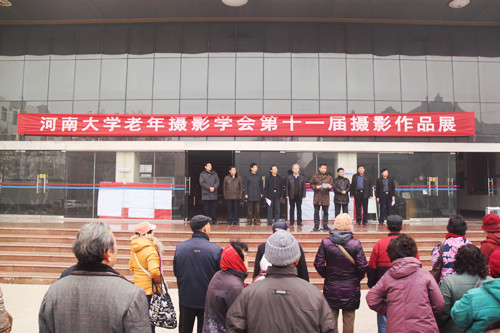 离退休工作处处长李孟来介绍了河南大学老年摄影学会11年的发展历史和现状。袁顺友宣布河南大学老年摄影学会第十一届摄影作品展开幕。