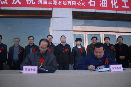 2013年12月9日上午,河南大学--河南丰源石油有限公司“石油化工工程技术研究中心” 签约暨揭牌仪式在济源市丰源石油有限公司举行。副校长关学增,济源市副市长刘庆芳、政协副主席卫祥玉,济源市有关部门以及我校科研处、化学化工学院等单位相关领导出席了揭牌仪式。仪式由济源市虎岭产业集聚区党工委书记翟伟栋主持。