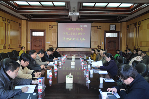 11月27日上午,中国民主促进会河南大学总支委员会第四次会员大会在我校明伦校区行政楼二楼会议室召开。开封市人民政府副市长、民进河南省委副主委、开封市委主委陈国桢,民进河南省委副主委、开封市委副主委、我校副校长宋纯鹏,中共开封市委统战部常务副部长王文生,民进开封市委副主委陈冠义到会致贺,校党委常务副书记梁晓夏出席会议并讲话,民建河南大学总支委员会主委秦奋代表兄弟党派致贺词。民进河南大学总支委员会20余位代表与会,民进河南大学第二届总支委员会主委贾玉英主持开幕式。