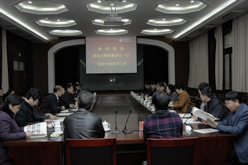 关爱和对董保华一行莅校调研表示热烈欢迎和衷心感谢。他简要介绍了我校现存的不可移动文物,并重点汇报了我校可移动文物的总体情况以及普查工作的进展情况。他说,我校可移动文物主要包括文物馆馆藏器物、艺术学院字画、图书馆古籍图书、档案馆的代表性实物。学校1986年建立了文物馆,是当时全国最早建立的高校文物馆之一。当前,我校普查工作正在有条不紊的进行中,目前已完成约1000件文物的基本信息采集工作。关爱和提出,我校部分古籍卷宗字画类文物,因不便移动,建议将普查工作和保护场所及设施的改善一并进行。