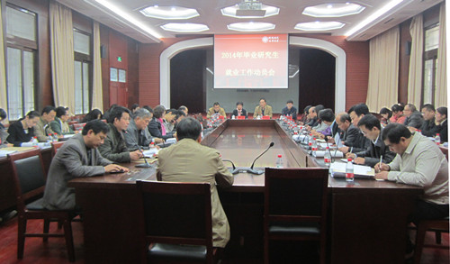 11月18日,我校召开2014年毕业研究生就业工作动员会,总结2013年研究生就业工作情况,部署2014年毕业研究生的就业工作。校党委副书记王凌出席了会议,研究生院、 毕业生就业指导与服务中心相关负责人,全校各研究生培养单位的主管副书记、研科办主任和研究生辅导员参加了会议,会议由研究生院常务副院长孙君健主持。