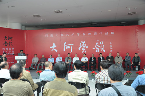9月29日上午,由河南省文联、河南大学主办,河南省美术家协会、河南省美术馆、我校艺术学院承办,河南省学校艺术教育协会、雅昌艺术网、书法导报社协办的“大河艺韵——河南大学艺术学院教师美术作品展”在河南省美术馆隆重举行开幕仪式。全国政协教科文卫委员会副主任、原河南省政协主席王全书,原河南省人大常委会副主任亢崇仁,原河南省政协副主席王平等领导,国内美术界专家学者、省内高校美术专业师生代表参加了开幕式。我校党委书记关爱和出席开幕式并致辞,学校相关职能部门、学院领导以及艺术学院师生代表参加了活动。开幕式由我校艺术学院院长赵振乾主持。