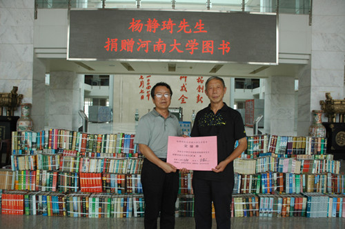 杨静琦之子冯鲁英在谈到母亲的遗愿时深情地说,中国的方志学家历来有将这方面的藏书捐赠给藏书机构的传统,而在母亲所从事的修志工作中,河南大学图书馆曾多次给予她无私的帮助,最为重要的是,河南大学图书馆有着丰富的地方志收藏,母亲认为这批藏书放在这里更能发挥其作用。