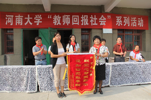 2013年9月6日下午,校党委副书记王凌以及校工会、教育科学学院、淮河临床学院相关负责人及师生来到了我校“教师回报社会”系列活动的第二站——开封市鼓楼区小王屯小学,给那里的师生送去了物质和精神上的双重关怀。