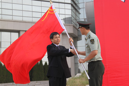 随后,校党委书记关爱和向军训团团长杨乾坤授旗,这标志着我校2013级本科生集中军事训练正式拉开帷幕。