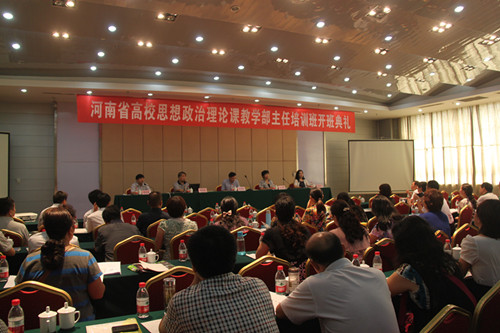 2013年7月25 日上午,全省高校思想政治理论课教学部主任培训班开班仪式在我校金明校区中州金明酒店二楼会议室举行。省教育厅思政处处长何秀敏、副处长张延华,我校党委副书王凌,全国高等学校教学名师、我校中原发展研究院院长耿明斋,全省近90所高校的思想政治理论课教学部主任参加仪式。开班仪式由校党委宣传部部长李庆春主持。