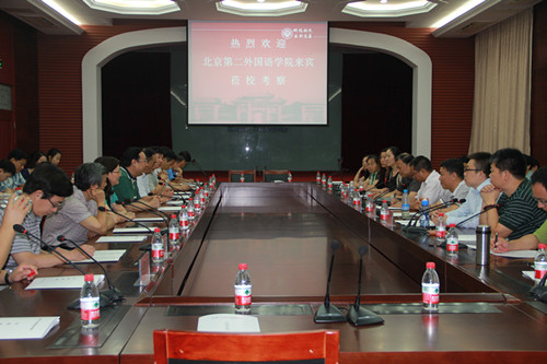 2013年7月11日上午,北京第二外国语学院校长助理、研究生处处长邹统钎,国际商学院党总支书记倪宏志,经贸与会展学院院长刘大可,MTA/MBA教育中心主任骆欣庆等专家、学者率领MBA、MTA专业研究生共四十余人来到我校访问。双方在明伦校区小礼堂进行了座谈,常务副校长赵国祥,研究生院、历史文化学院和工商管理学院相关负责人参加了座谈会。会议由研究生院常务副院长孙君健主持。