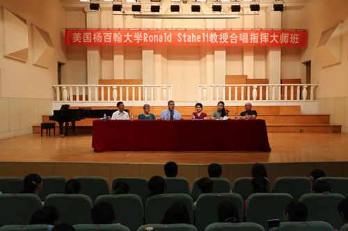 7月5日至7日,美国杨百翰大学(Brigham Young University)艺术学院指挥系主任罗纳德•斯塔赫利(Ronald Staheli)教授/博士应邀到访我校,为艺术学院合唱指挥专业学生举办了为期三天的合唱指挥大师班。